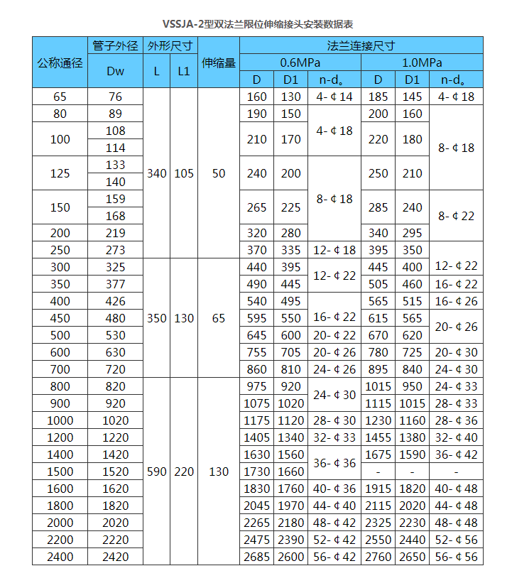 4 材質(zhì)優(yōu)良,運(yùn)行穩(wěn)定。VSSJA-2型雙法蘭限位伸縮接頭適用于輸送海水、淡水、冷熱水、飲用水、生活污水、原油、燃油、潤滑油、成品油、空氣、煤氣、溫度不高于250度的蒸汽和顆粒粉狀等介質(zhì)。